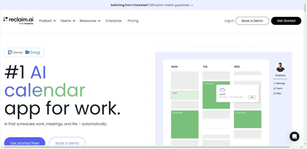 Reclaim is a smart calendar tool that automatically builds your perfect schedule for you. You tell it what your priorities are (like deep work, client calls, or lunch) and it moves things around dynamically when meetings pop up.